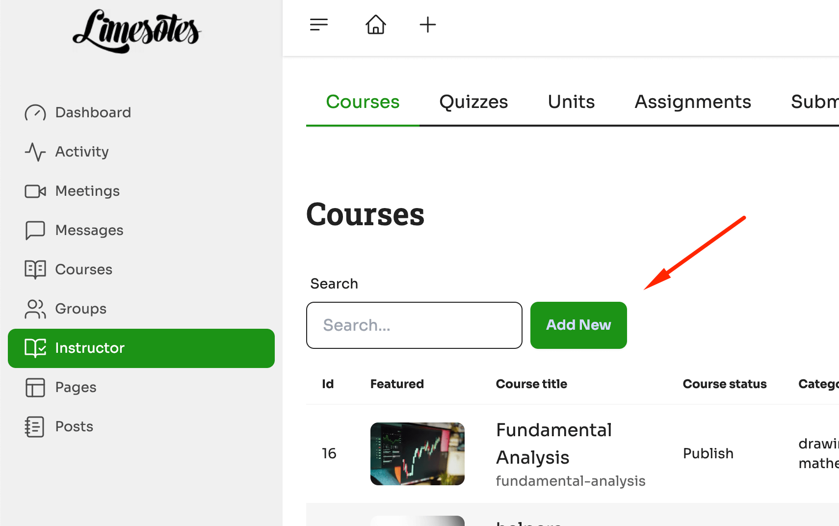 To add a course simply head over to Instructor panel and click on “Add New”.